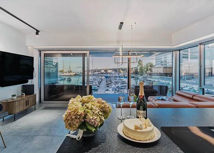 Położony przy plaży Apartament Yacht Park Marina ekskluzywny apartament z widokiem na Marinę Gdynia jest położony w dzielnicy Śródmieście, prawie 5 min pieszo od Daru Pomorzy i oferuje park wodny, słoneczny taras i teren zabaw. Położony przy plaży apartament o powierzchni 85 m^2 z tarasem z widokiem na morze mieści się w niewielkiej odległości od Molo Południowego.